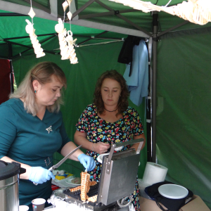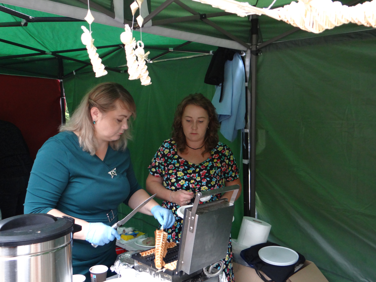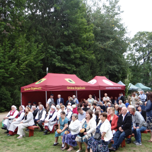 Po powitaniu przybyłych gości nastąpiła część artystyczna - występy zespołów ludowych: Ruczaj z Maćkowej Rudy, Zobalda z Kozłowej Rudy i Pogranicza z Szypliszki. Można było posilić się darmową grochówką od Katerning Kalinka, kartaczami i różnymi przepysznymi specjałami przygotowanymi przez Koło Gospodyń Wiejskich w Becejłach. Dziękujemy bardzo, regionalnym artystom, że zechcieli wystawić się i pochwalić swoim rękodziełem.