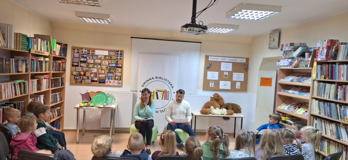 We wtorek, 30.09.2025 r., w Gminnej Bibliotece Publicznej w Słobódce świętowaliśmy Dzień Głośnego Czytania razem z najmłodszymi czytelnikami - przedszkolakami i ich wychowawczyniami. Podczas spotkania zabrzmiały pełne humoru i mądrości wiersze Jana Brzechwy. Dzieci miały okazję posłuchać m.in. “Na straganie”, “Żuka”, “Kaczki Dziwaczki”, “Lenia” czy “Skarżypyta”. Mali goście bawili się świetnie - żywo reagowali na zabawne fragmenty, a niektórzy próbowali nawet recytować znane już sobie rymowane wersy.