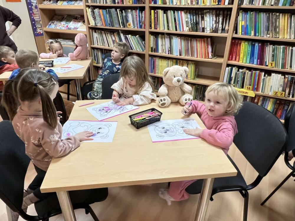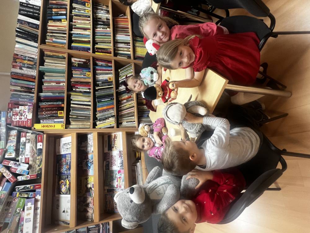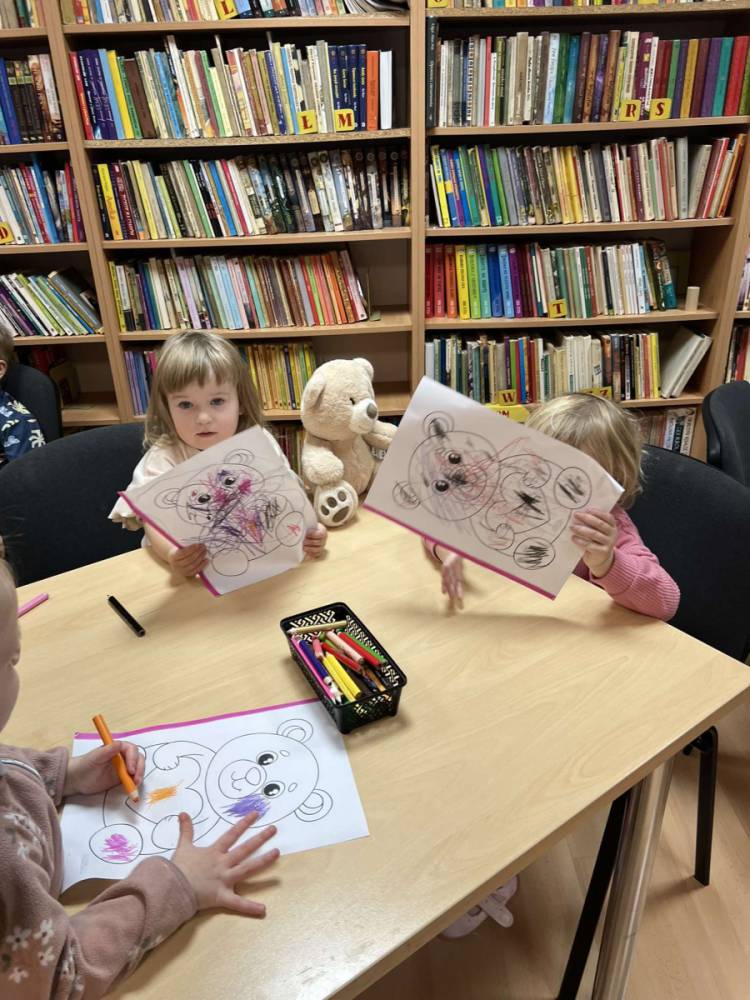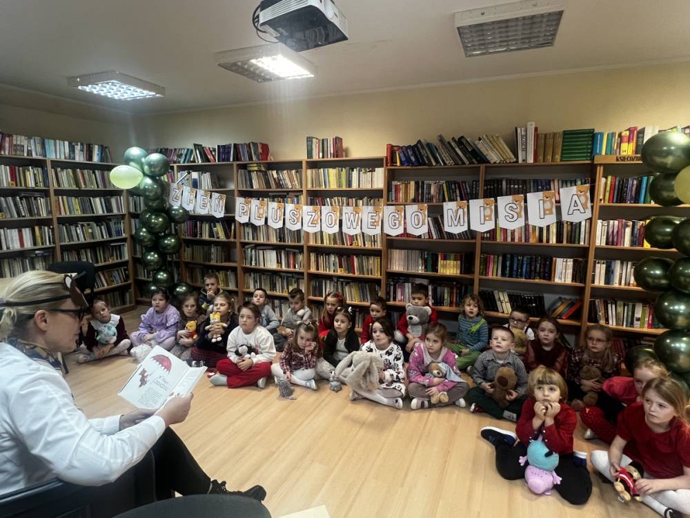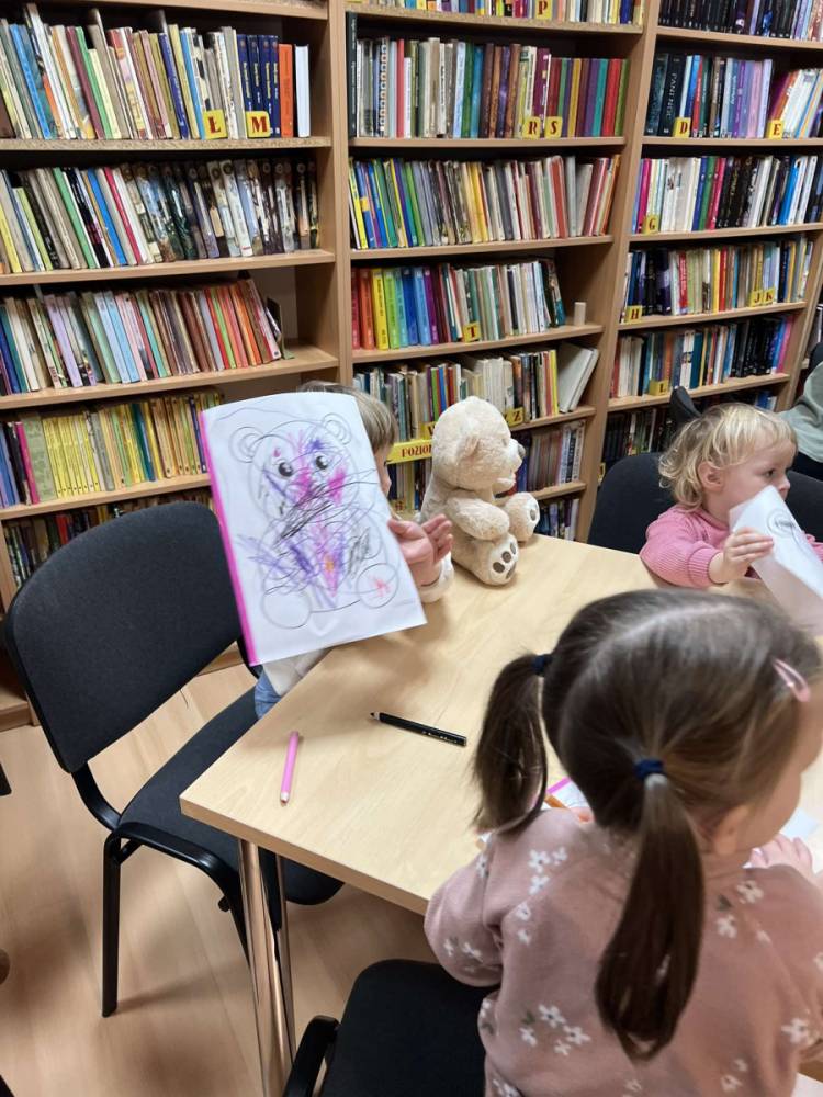 Jak co roku, 25 listopada nasza biblioteka zmieniła się w prawdziwą krainę pluszowych misiów. Odwiedziły nas dzieci z przedszkola, aby wspólnie świętować Światowy Dzień Pluszowego Misia. Na początku spotkania zostały przeczytane najmłodszym opowiadania o misiach, które wprowadziły wszystkich w pogodny nastrój.